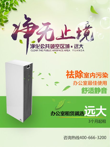 租赁远大空气净化器办公室净化空气,除甲醛。租赁远大空气净化器网点,主要型号有TA1000,TA2000,非常适合公司敞开式办公区域,会议室,领导办公室短租或长租。